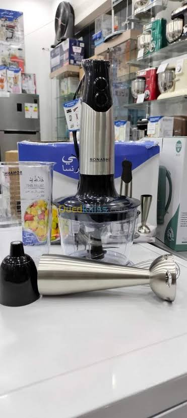 خلاط يدوي من الفولاذ المقاوم للصدأ.وعاء بلاستيكي 700 مل.مع مفرمة كبيرة 500 مل.مستويان للسرعة.رأس خلط قابل للفك لسهولة التنظيف.