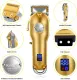 ماكينة قص الشعر الكهربائية الاحترافية من Kemei ، ماكينة قص الشعر الرقمية LCD القابلة لإعادة الشحن ، ماكينة قص الشعر اللاسلكية للرجال باللون الفضي والذهبي ، شفرة قابلة للتعديل
